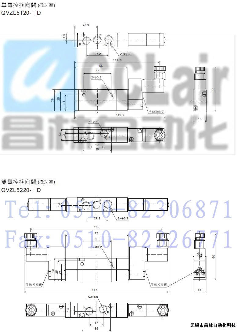 QVZL5220-7G-01,QVZL5220-7D-01,QVZL5220-8G-01,QVZL5220-8D-01,二位/三位五通電控換向閥