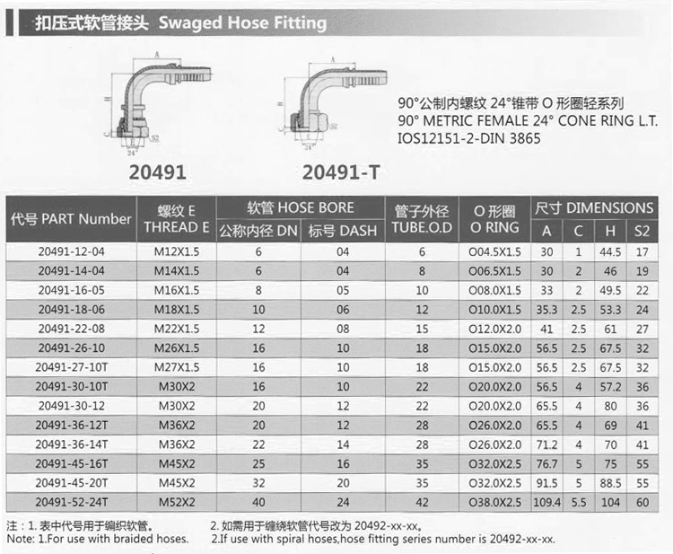 20491-12-04,20491-27-10T,20491-36-14T,20491-45-16T,20491-45-20T,20491-52-24T,扣壓式軟管接頭