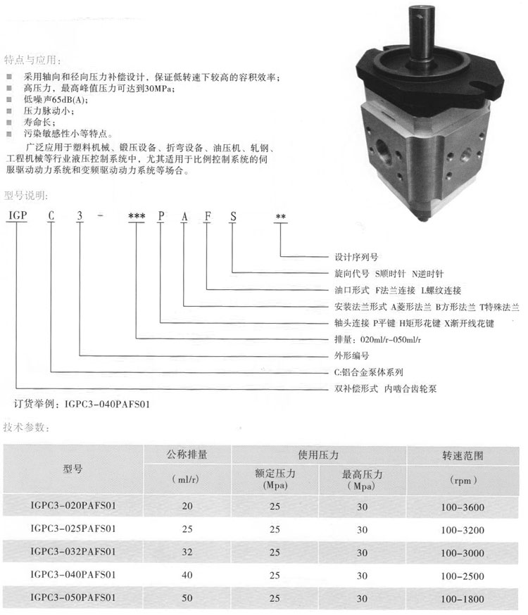 IGPC3-020PAFS01,IGPC3-025PAFS01,IGPC3-032PAFS01,IGPC3-040PAFS01,齒輪泵