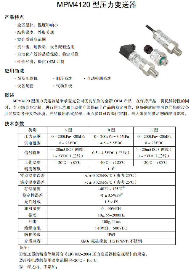 MPM4120A,MPM4120B,MPM4120C,壓力變送器