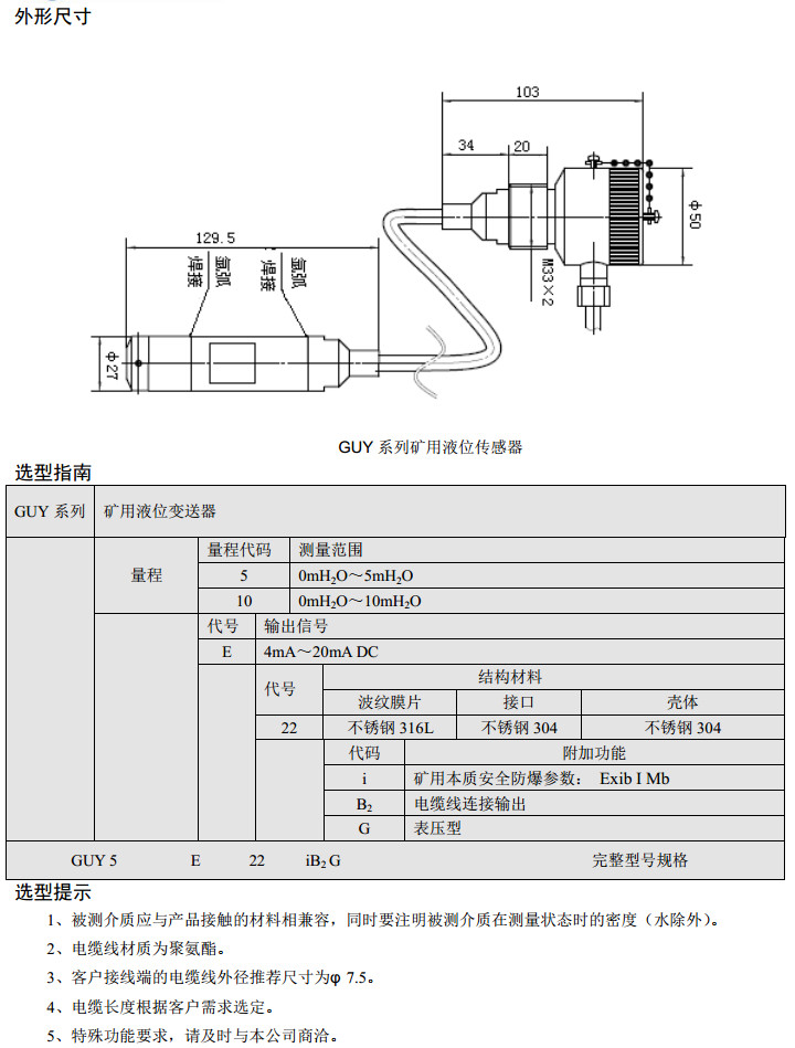 GUY5E-22,GUY10E-22,礦用液位變送器