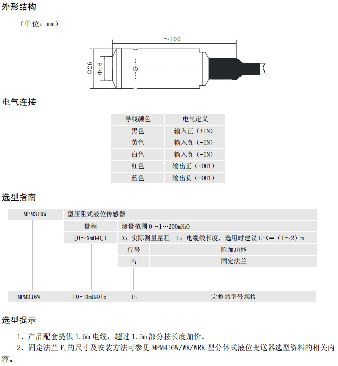 MPM316W,壓阻式液位傳