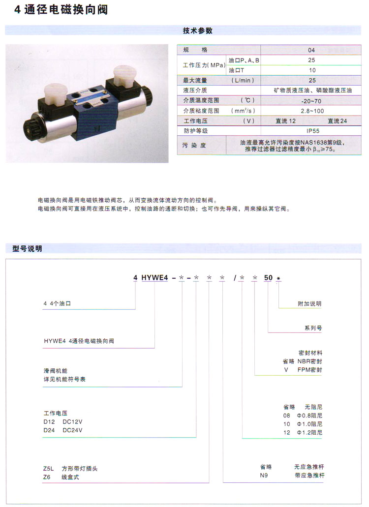 4HYWE4-3C2-D12,4HYWE4-3C3-D12,4HYWE4-3C4-D12,4HYWE4-3C6-D12,4HYWE4-2B2B-D12,電磁換向閥