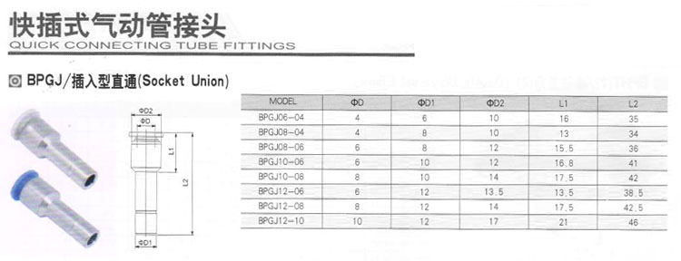 BPGJ06-04,BPGJ08-04,BPGJ08-06,BPGJ10-06,BPGJ10-08,BPGJ12-06,BPGJ12-08,BPGJ12-10,快插式氣動管接頭 |