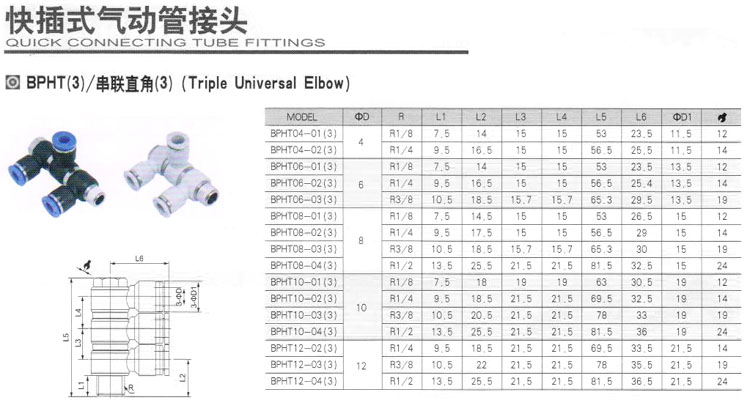 BPHT04-01(3),BPHT06-01(3),BPHT08-01(3),BPHT10-01(3),BPHT12-02(3),快插式氣動(dòng)管接頭