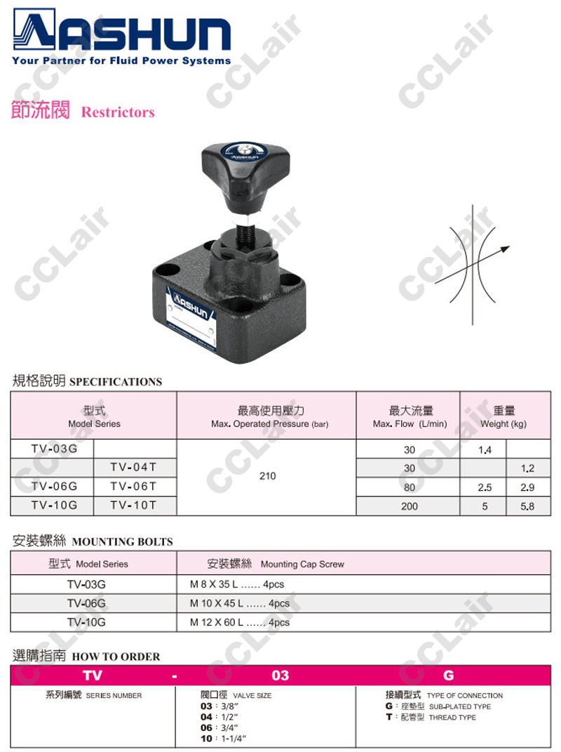 TV-03G,TV-04T,TV-06G,TV-06T,TV-10G,TV-10T,ASHUN油順節(jié)流閥
