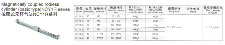NCY1R-10,NCY1R-15,NCY1R-20,NCY1R-25,NCY1R-32,NCY1R-40,磁藕式無(wú)桿氣缸