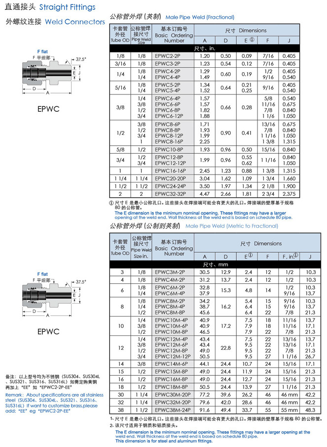 EPWC2,EPWC3,EPWC4,EPWC5,EPWC6,EPWC8,EPWC10,EPWC12,EPWC16,EPWC20,直通焊接頭 |