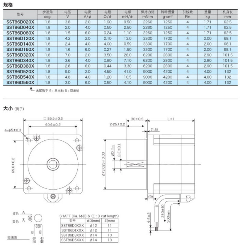SST86D020X,SST86D040X,SST86D060X,SST86D120X,SST86D140X,兩相混合步進馬達 |