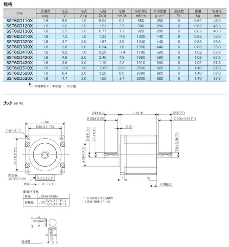 SST60D110X,SST60D120X,SST60D130X,SST60D310X,SST60D320X,兩相混合步進(jìn)馬達(dá) |