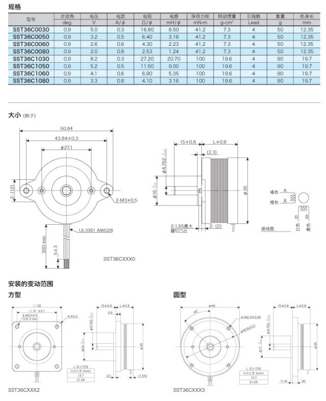SST36C0030,SST36C0050,SST36C0060,SST36C0080,SST36C1030,兩相混合步進馬達 |