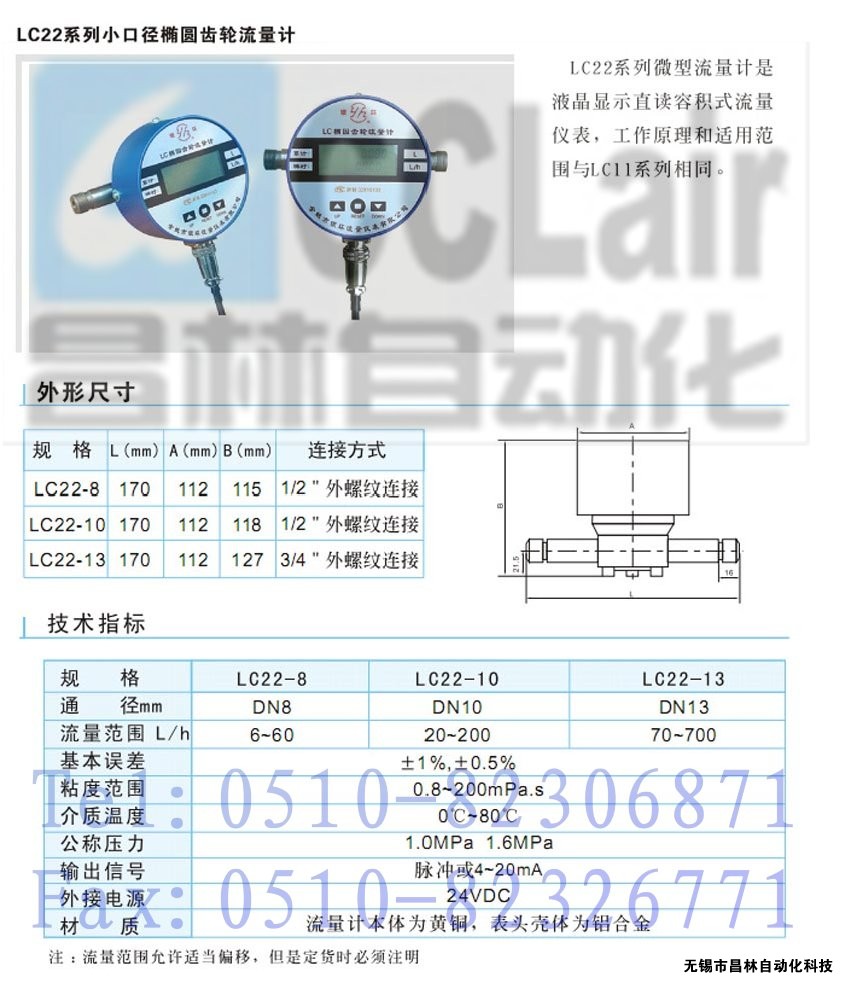 LC22-8,LC22-10,LC22-13,小口徑橢圓齒輪流量計