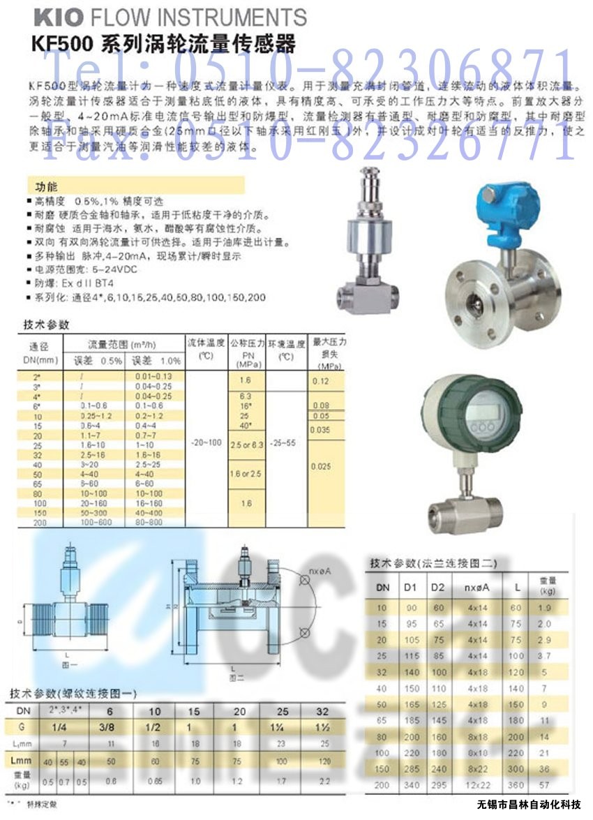 KF500-25,KF500-40,KF500-50渦輪流量傳感器