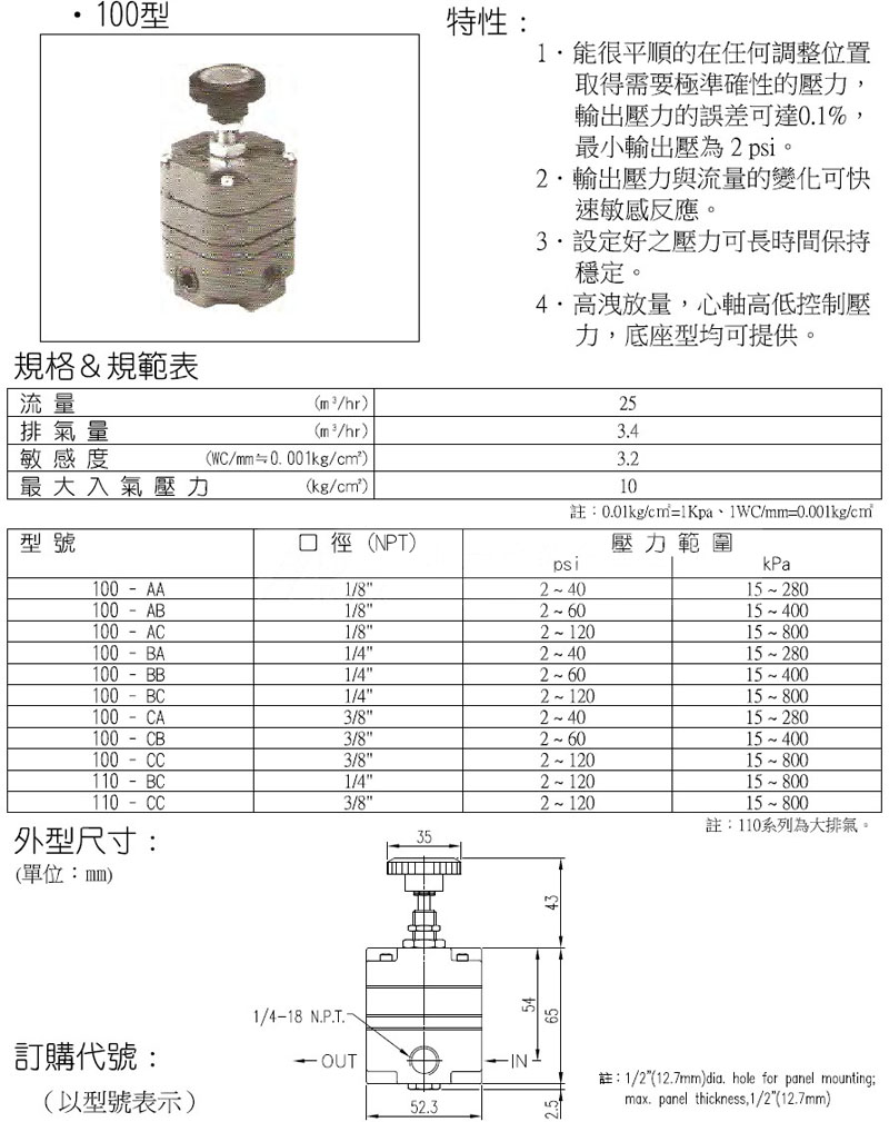 100-AA,100-AB,100-AC,100-BA,100-BB,100-BC,100-CA,panix精密調(diào)壓閥