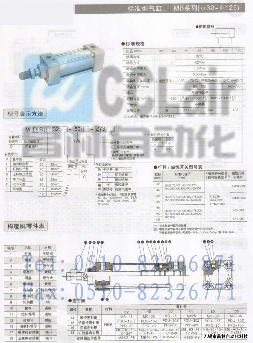 MBL100-25,MBL100-50,MBL100-75,MBL100-100,標(biāo)準(zhǔn)型氣缸,