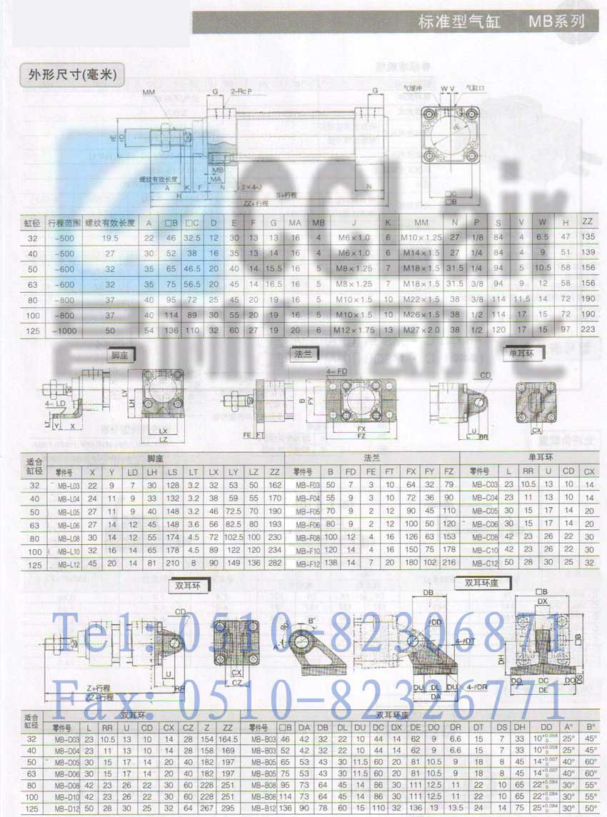 MBB40TN-25,MBB40TN-50,MBB40TN-75,MBB40TN-100,標準型氣缸