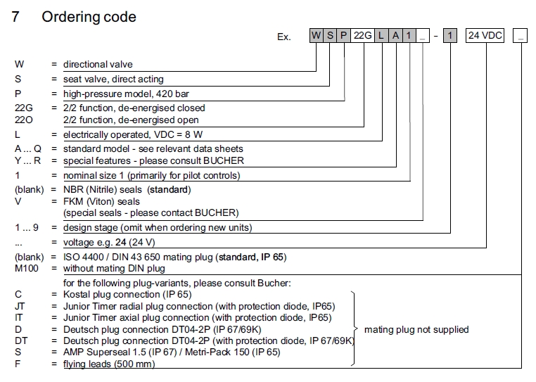 WSP22GLA1-1,WSP22OLA1-1,WSP22GLA1V-1,WSP22OLA1V-1,Bucher方向閥