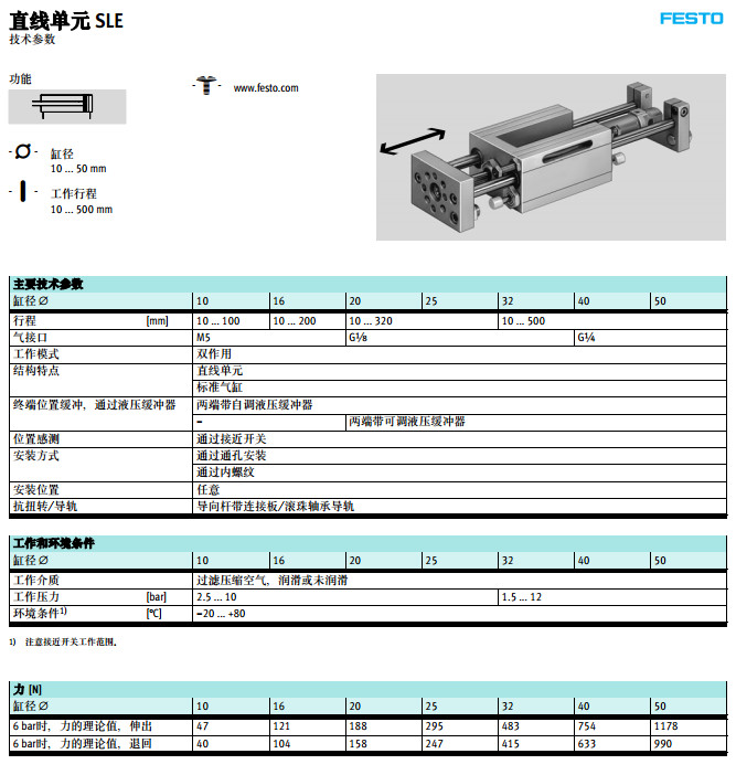 SLE-10,SLE-16,SLE-20,SLE-25,SLE-32,SLE-40,SLE-50,festo直線單元 |