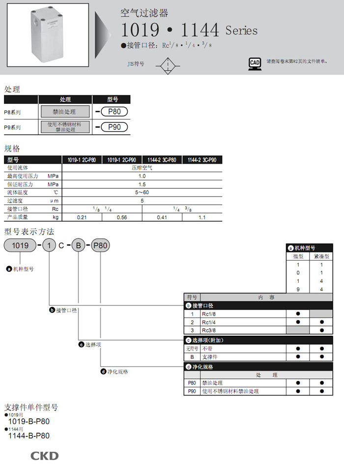 1019-1C-P80,1019-2C-P80,1019-1C-P90,1019-2C-P90,1144-1C-P80,1144-2C-P80,1144-1C-P90,1144-2C-P90,CKD空氣過(guò)濾器