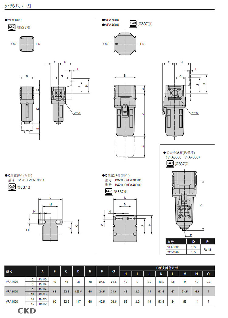 VFA1000-6,VFA1000-8,VFA3000-8,VFA3000-10,VFA4000-10,VFA4000-15,CKD真空過濾器 |