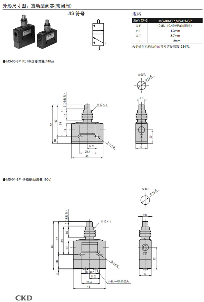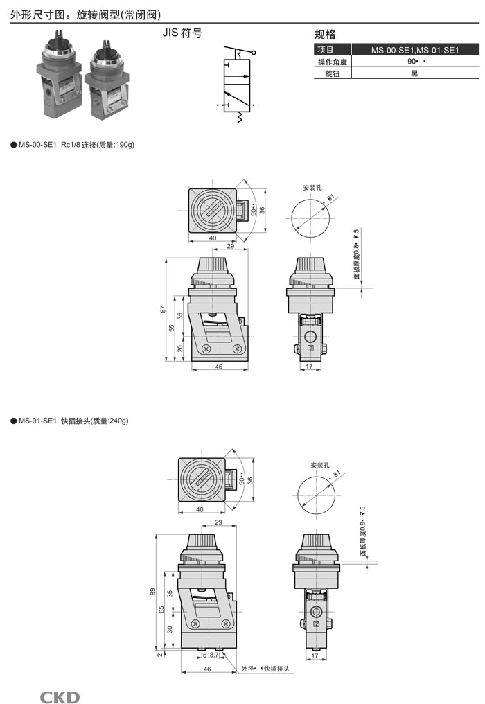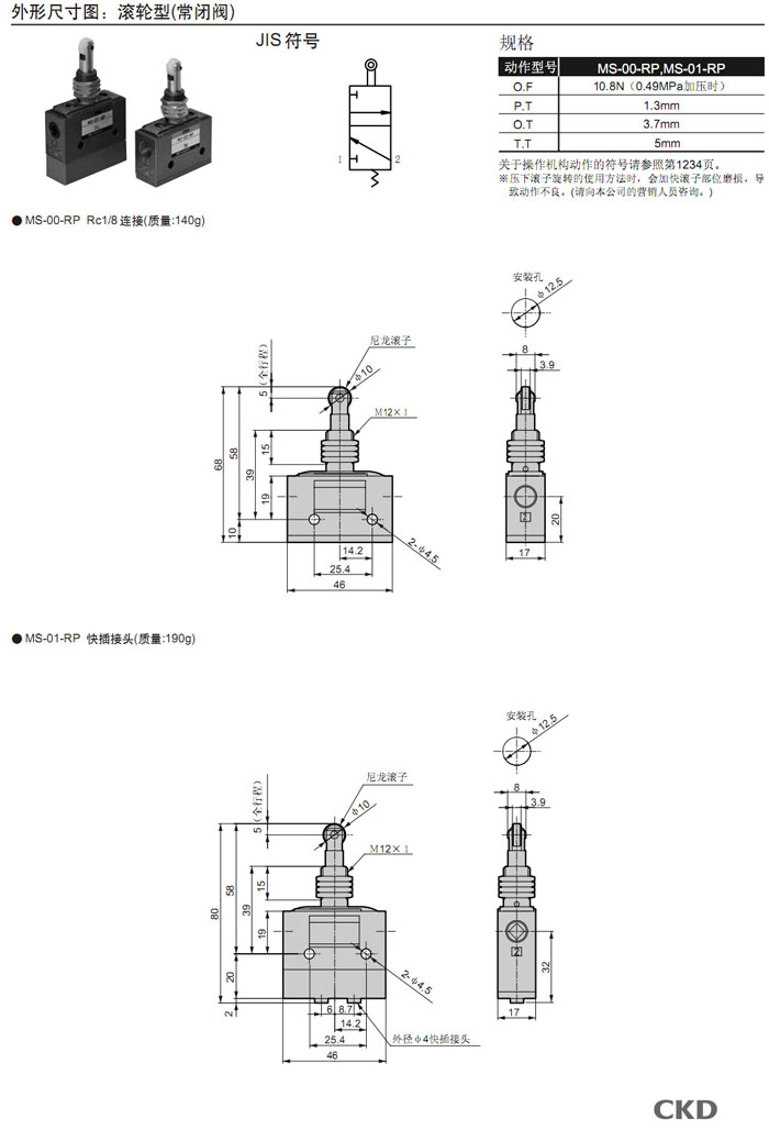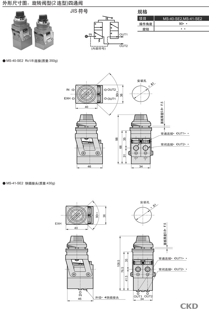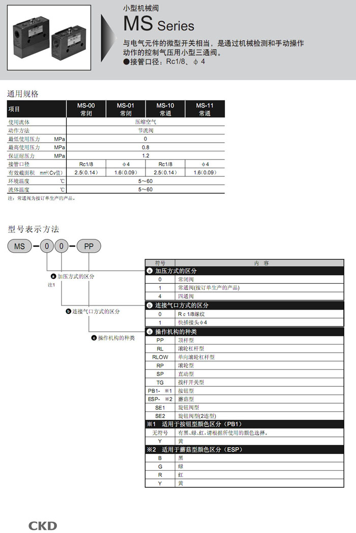 MS-00,MS-01,MS-10,MS-11,MS-40,MS-41,MS-00-PP,MS-01-PP,MS-10-PP,MS-40-SE2,CKD機械閥