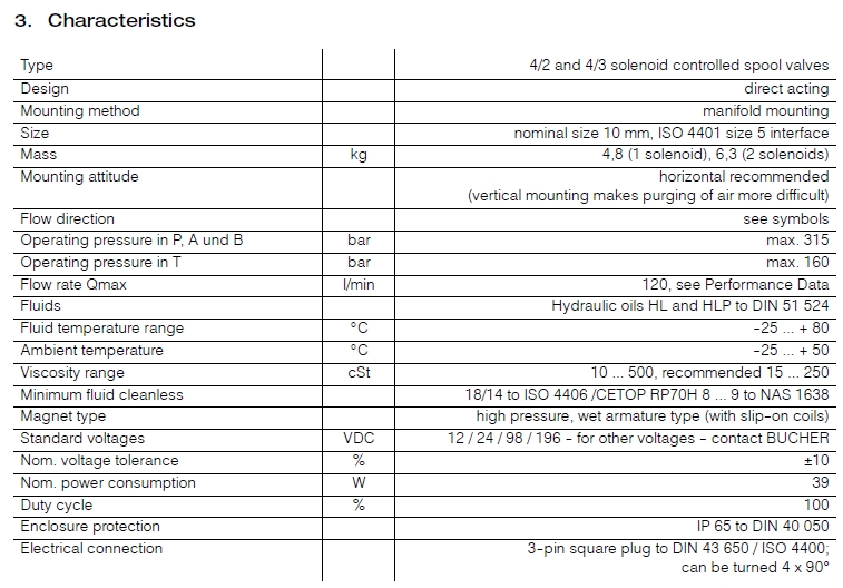 WEDE-43-AD,WEDE-43-B,WEDE-43-D,WEDE-42-G,WEDE-42-AD,WEDE-42-B,Bucher直動式電磁換向閥