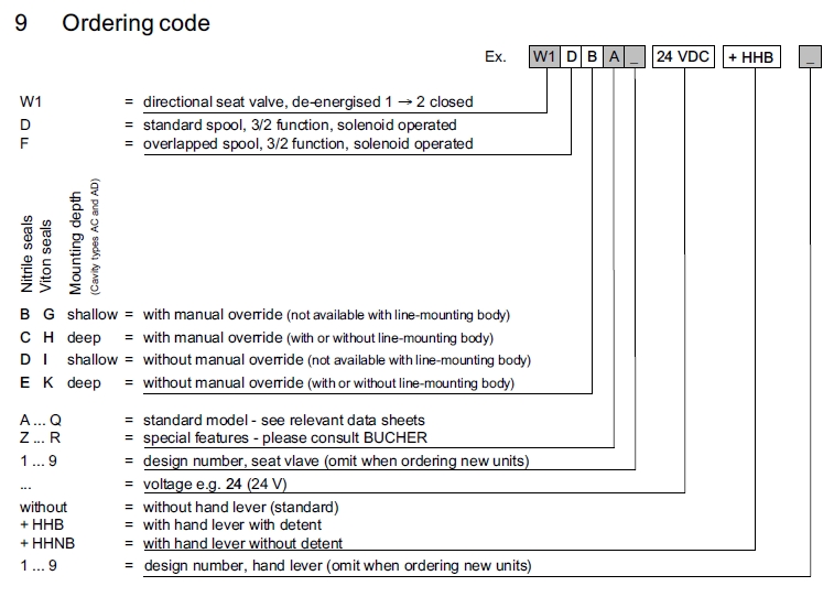 W1DBA1-24VDC,W1DCA1-24VDC,W1DDA1-24VDC,W1DEA1-24VDC,W1FBA1-24VDC,Bucher方向閥