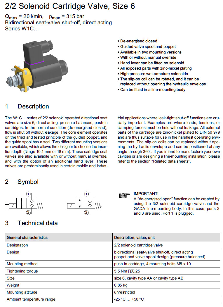 W1CBA1-24VDC,W1CCA1-24VDC,W1CDA1-24VDC,W1CEA1-24VDC,Bucher方向閥