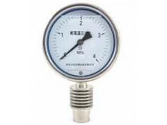 耐高溫壓力表在耐溫壓力表的基礎上加裝不銹鋼隔離散熱器,內充隔離液體,測量的介質溫度可達≤850℃。主要測量高溫高壓的蒸汽壓力,適用于石油開采和熱點行業(yè)。 舌型壓力表主要用于測量高粘度,易結晶物質的壓力。主要用于造紙化纖等行業(yè)。