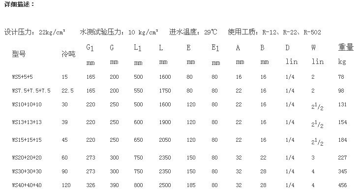 WS5+5+5,WS7.5+7.5+7.5,WS10+10+10,WS13+13+13,WS15+15+15,三回路冷凍機(jī)冷凝器