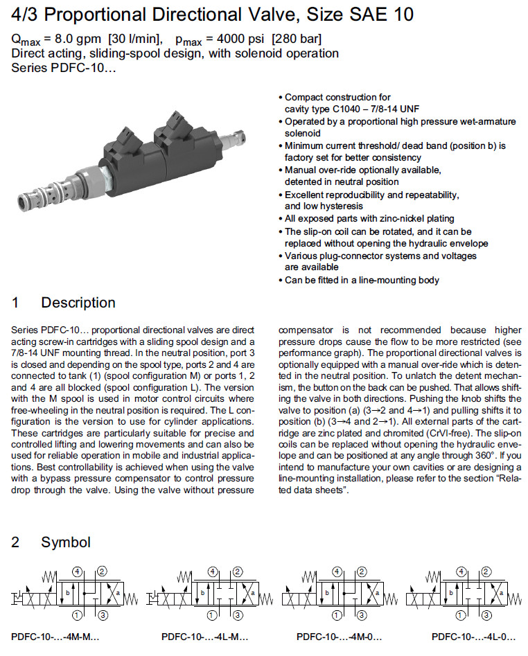 PDFC-10-N-4M-A-M,PDFC-10-V-4M-A-M,PDFC-10-N-4L-A-M,PDFC-10-V-4L-A-M,Bucher比例方向閥 |