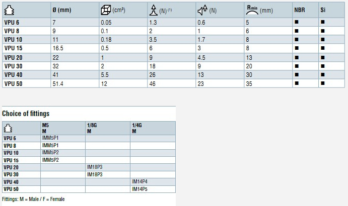 VPU系列通用平面吸盤,Ø6 - 50mm,材料:丁腈橡膠(NBR),硅膠(SI)。