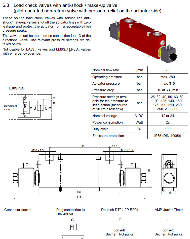 LU8SPEC-160-160-0M18,LU8SPEC-NVO-160-0M18,LU8SPEC-160-NVO-0M18,Bucher負(fù)荷止回閥