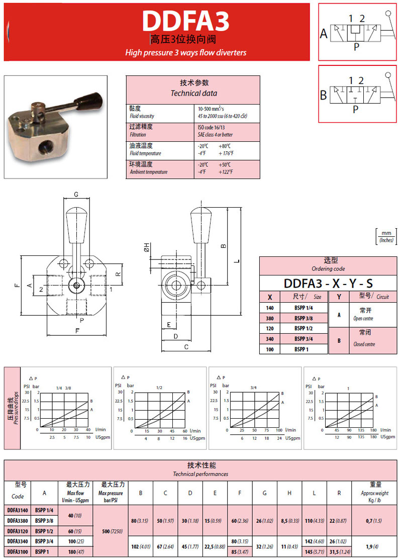 DDFA3140,DDFA3380,DDFA3340,DDFA3100,高壓3位換向閥