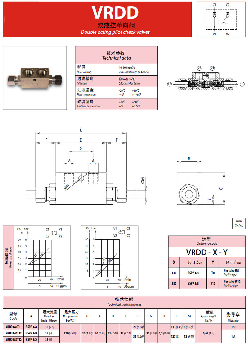 VRDD140T8,VRDD140T12,VRDD380T12,雙液控單向閥