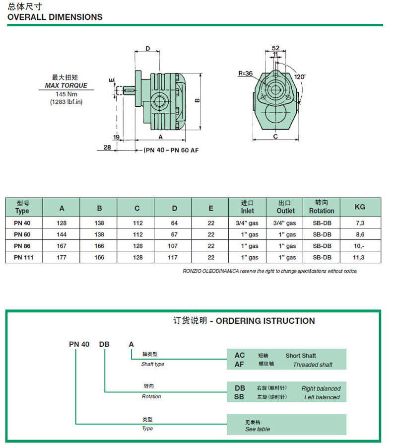 PN40-DB-A,PN60-DB-A,PN86-DB-A,PN111-DB-A,PN40-SB-A,PN60-SB-A,PN86-SB-A,PN111-SB-A,齒輪泵
