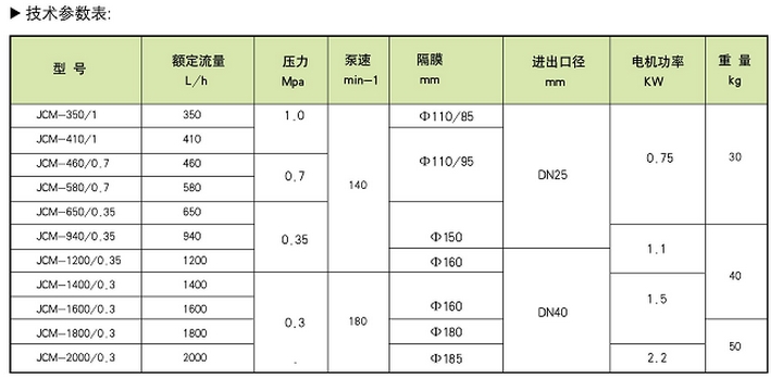 JCM-350/1,JCM-410/1,JCM-460/0.7,JCM-580/0.7,JCM-650/0.35,機械隔膜式計量泵