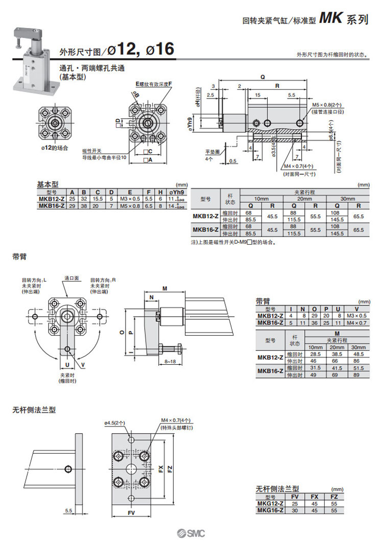 MKB12,MKB16,MKB20,MKB25,MKB32,MKB40,MKB50,MKB63,MKG12,MKG16,MKG20,MKG25,MKG32,MKG40,MKG50,MKG63,SMC回轉夾緊氣缸