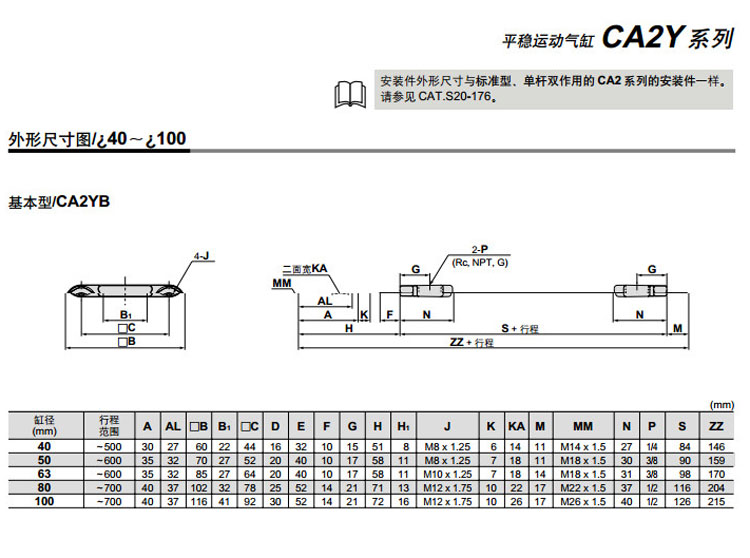 CA2YB80-300,CA2YB80-350,CA2YB80-400,CA2YB80-450,CA2YB80-500,CA2YB80-600,CA2YB80-700,CA2YB100-25,