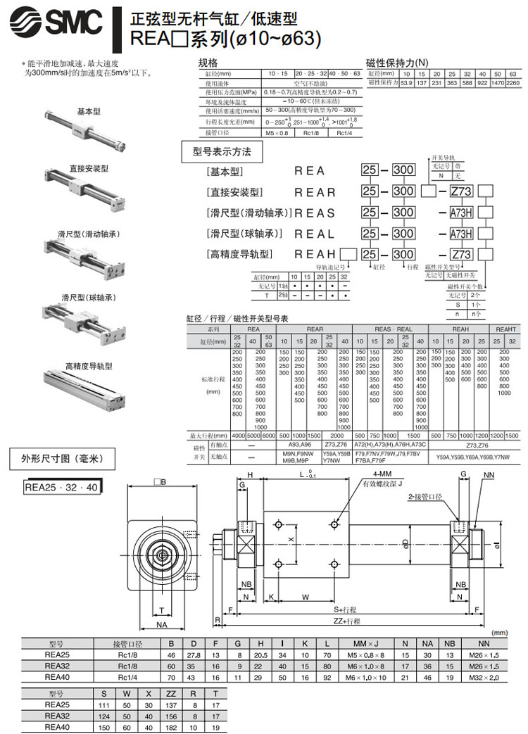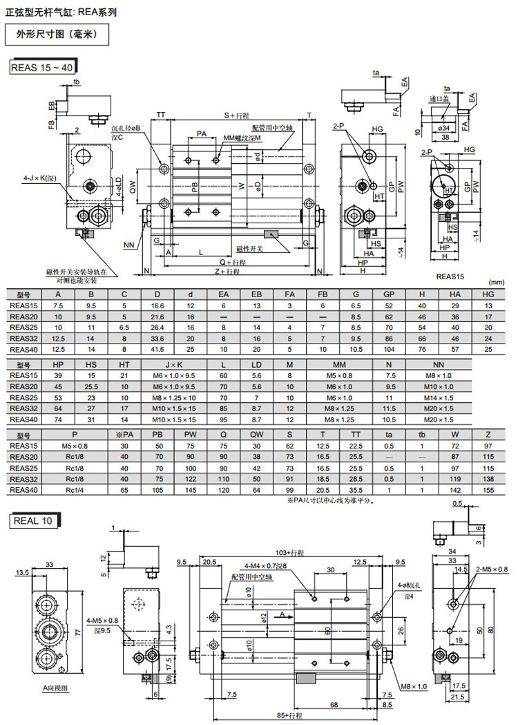 REAS10-150,REAS15-150,REAS20-200,REAS25-200,REAS32-200,REAS40-200,REAS10-200,SMC正弦無桿氣缸