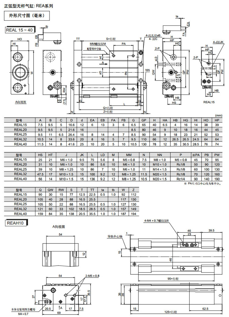 REAR10-150,REAR15-150,REAR20-200,REAR25-200,REAR32-200,REAR40-200,REAR10-200,SMC正弦無桿氣缸