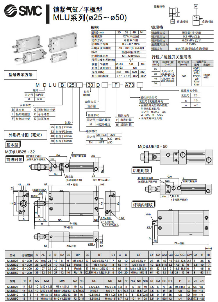 MDLUB25-5,MDLUL25-5,MDLUF25-5,MDLUG25-5,MDLUC25-5,MDLUD25-5,MDLUB32-5,SMC鎖緊氣缸