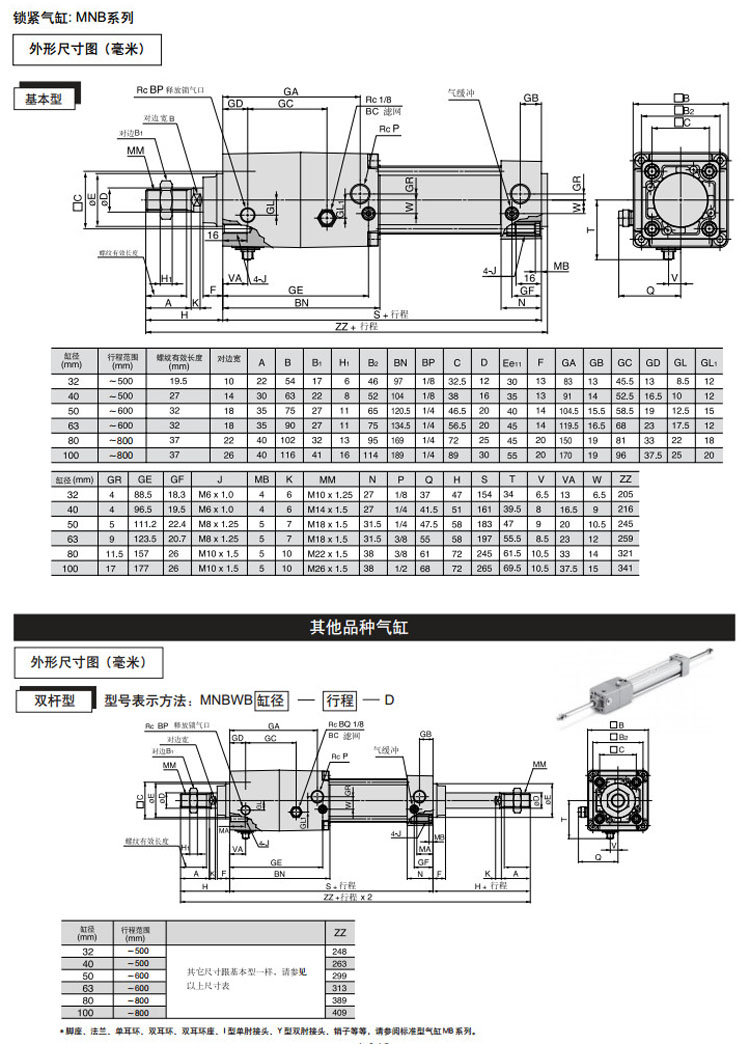 MNBD100-350,MNBD100-400,MNBD100-450,MNBD100-500,MNBD100-600,MNBD100-700,MNBD100-800,MNBD63-350,MNBD63-400,SMC標(biāo)準(zhǔn)型鎖緊氣缸