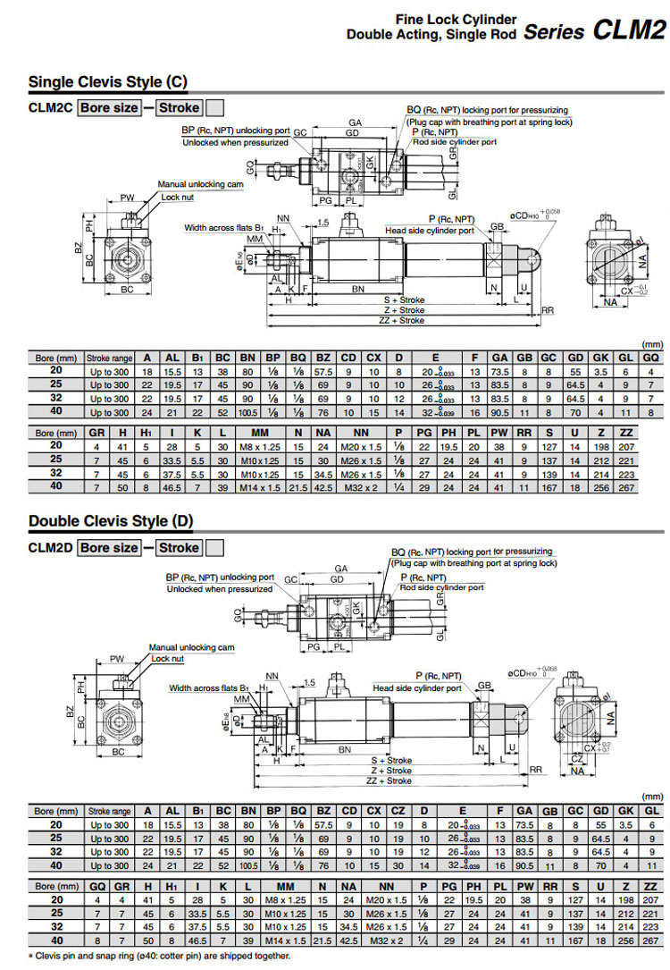 CLM2B20-25,CLM2L20-25,CLM2G20-25,CLM2C20-25,CLM2D20-25,CLM2T20-25,CLM2E20-25,SMC精密鎖緊氣缸