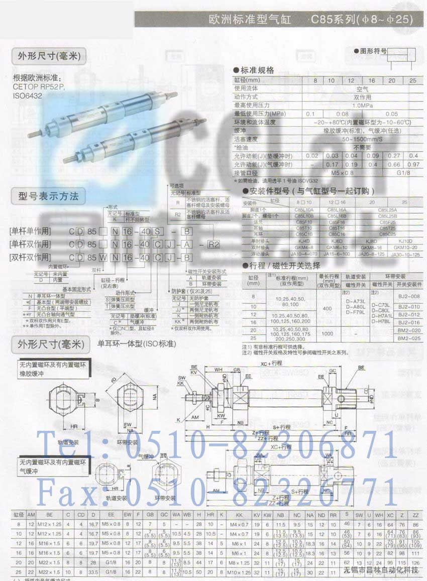 CD85E25-25T,CD85E25-40T,CD85E25-50S,CD85E25-50T,標準型氣缸