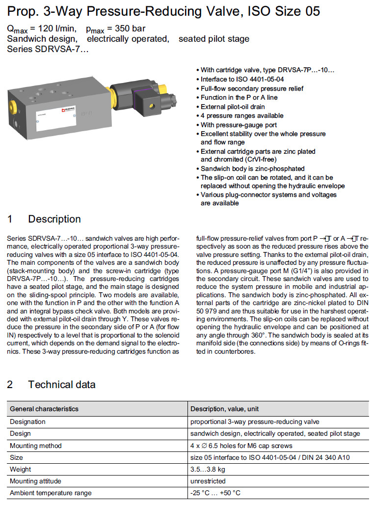 SDRVSA-735-P-10,SDRVSA-725-P-10,SDRVSA-716-P-10,SDRVSA-710-P-10,Bucher比例減壓閥