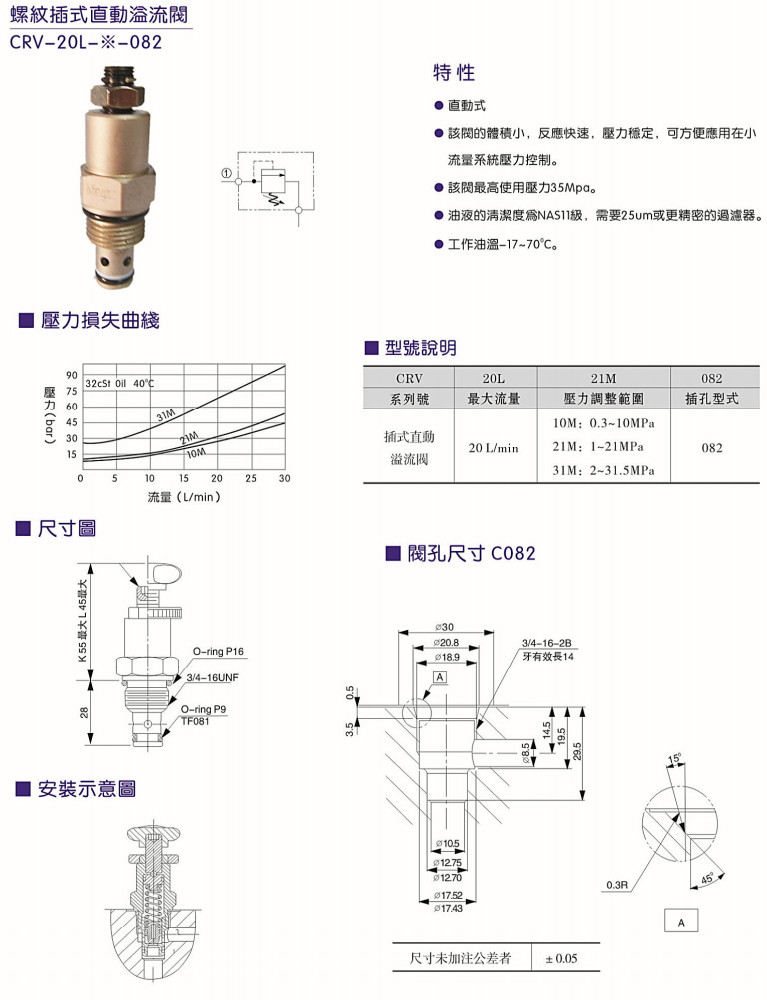 CRV-20L-10M-82,CRV-20L-21M-82,CRV-20L-31M-82,螺紋插式直動溢流閥