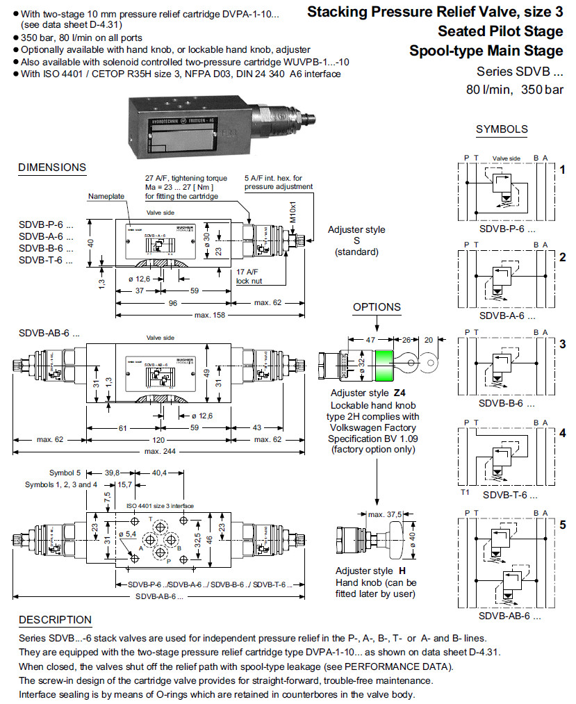 SDVB-A-6-SN,SDVB-B-6-SN,SDVB-T-6-HM,SDVB-P-6-ZN,SDVB-AS-6-SN,Bucher卸壓閥