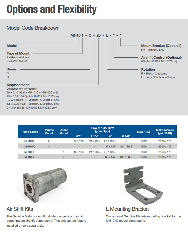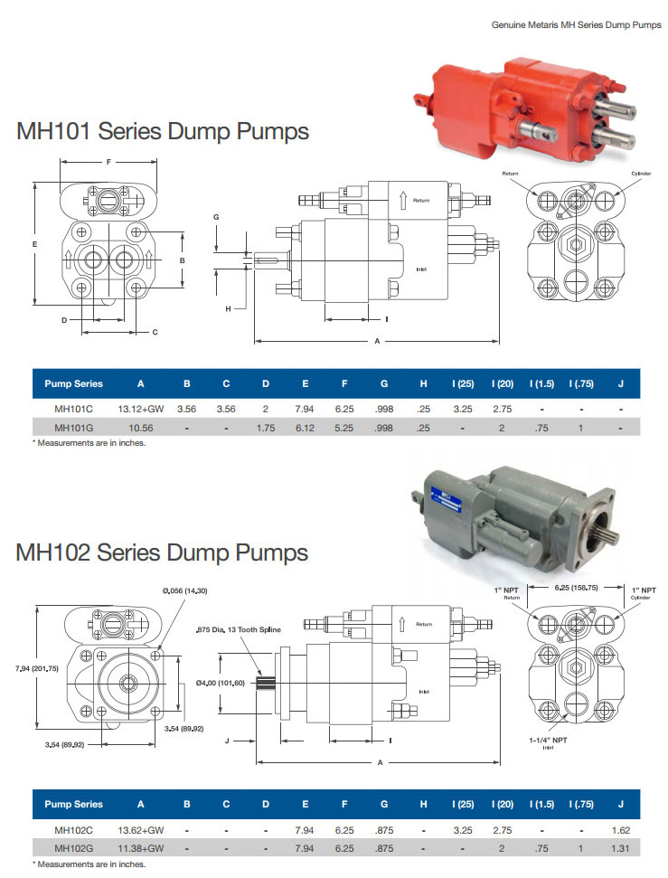 MH101G-20,MH101C-20,MH102G-20,MH102C-20,MH101G-25,MH101G-0.7,MH102C-1.5,MH102G-1.5,Metaris自卸泵