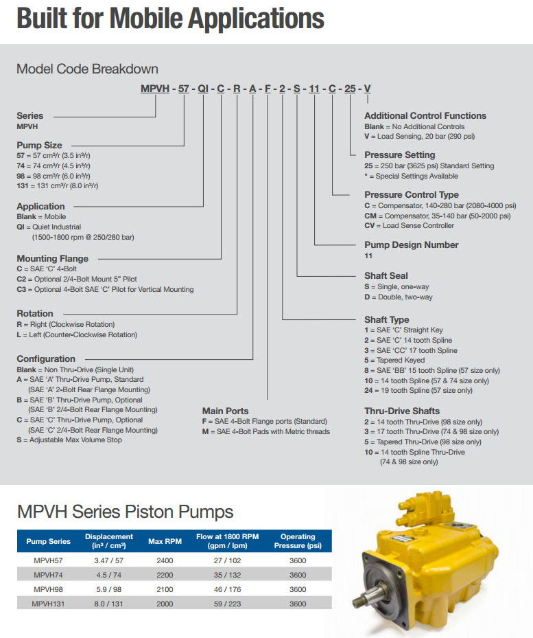 MPVH57,MPVH74,MPVH98,MPVH131,Metaris活塞泵